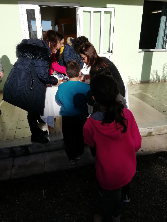 Παράλληλα, πρωτοχρονιάτικη πίτα έκοψε για τα παιδιά του Νηπιαγωγείου και τους εκπαιδευτικούς του Δημοτικού και Νηπιαγωγείου.